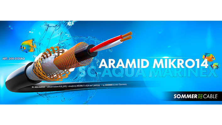the SC-AQUA MARINEX ARAMID MIKRO14 microphone cable from Sommer cable remains watertight thanks to its special waterblocking tape and can be permanently laid at a water depth of up to 20 m. Thus it can be used for a large range of applications, from installation in amusement parks, sports arenas and wildlife parks to utilization in OB vans, near the coast or in boat building.